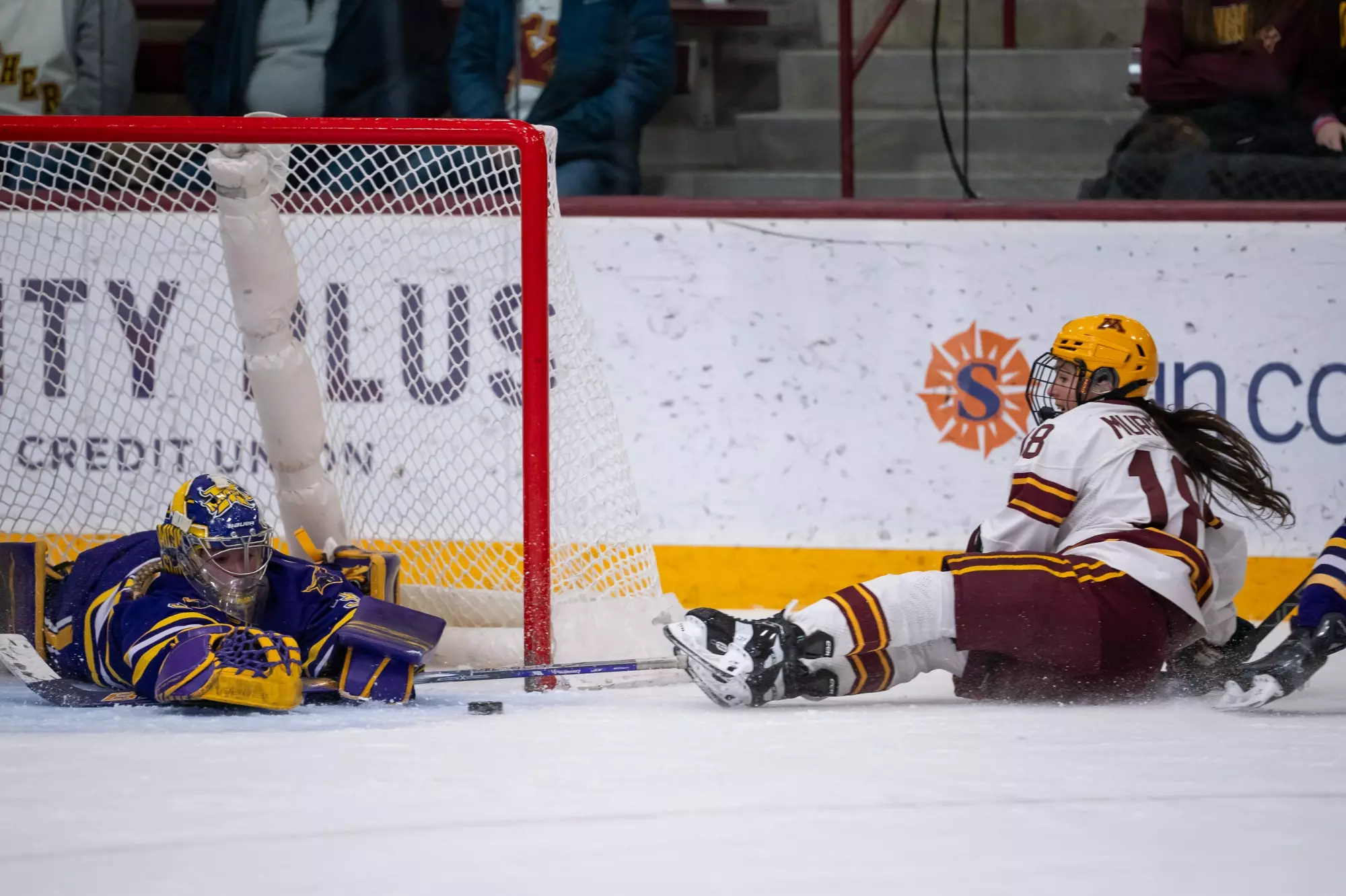 The Gophers then piled on the goals, adding three more by the end of the second period (including two from Murphy), to reach 99 career goals.