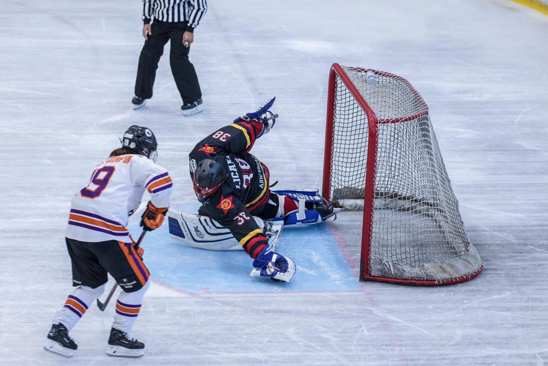 Even in the AWIHL, I sometimes accidentally throw in a pad stack or end up flopping around. Otherwise, though, I’d describe my style as aggressive. I like to play outside my crease, challenge shooters, and stay physical, and I absolutely love shootouts.