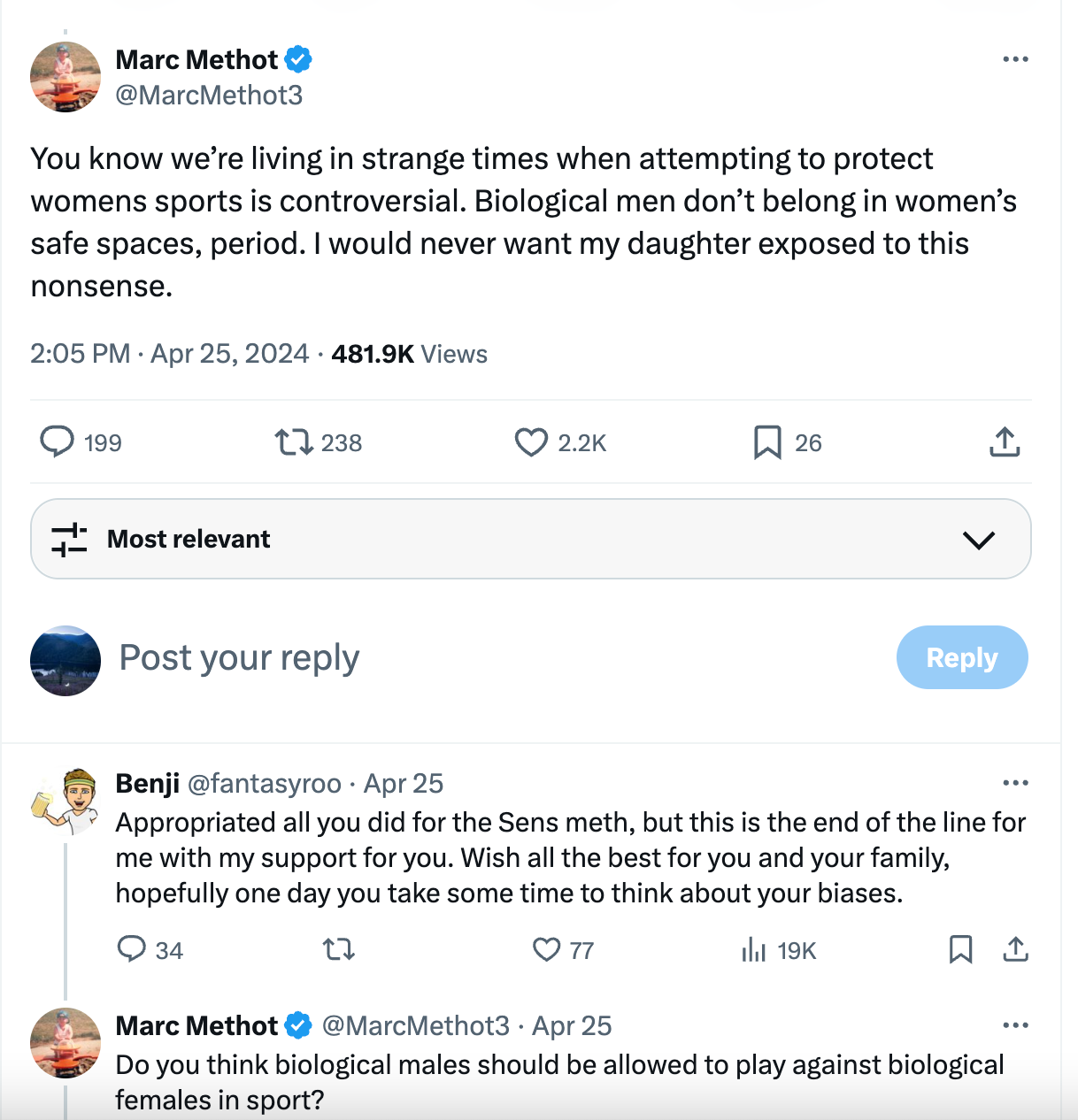 It's disturbingly easy to picture this happening in women's hockey. The second a non-femme presenting player is too good, her gender will be called into question regardless of how she identifies or what any of her government identification papers have to say about it. The internet will pile on and transphobes like Marc Methot (who let us not forget, was brought in by PWHL Ottawa to teach hitting) will take to their keyboards to decry her. The bullying will be cruel and taxing.