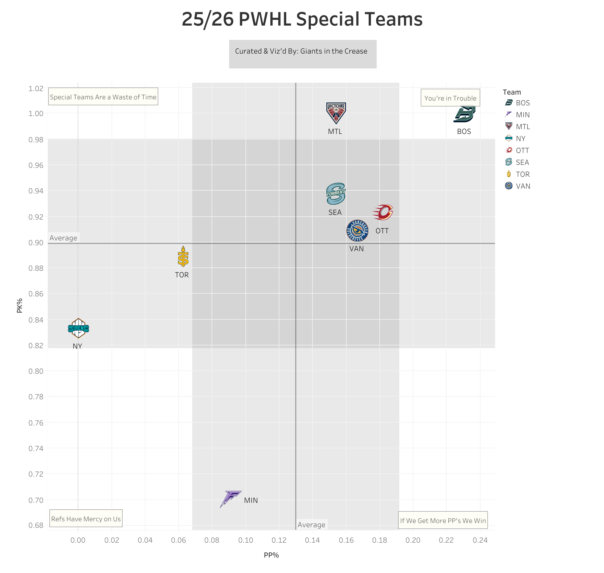 The fourth line has also been quite good. The group had looked solid in their first three games, and Sunday’s game against Boston was their best of the season. Klára Hymlárová scored the only goal of the game, off a great feed from Claire Butorac. They also held Boston off the scoresheet at even strength, which means the fourth line hasn’t been scored on yet this season. Hymlárová, Butorac, and Peyton Anderson have chipped in a little offense and have not allowed a goal against; there isn't much more you could ask for from a fourth line.