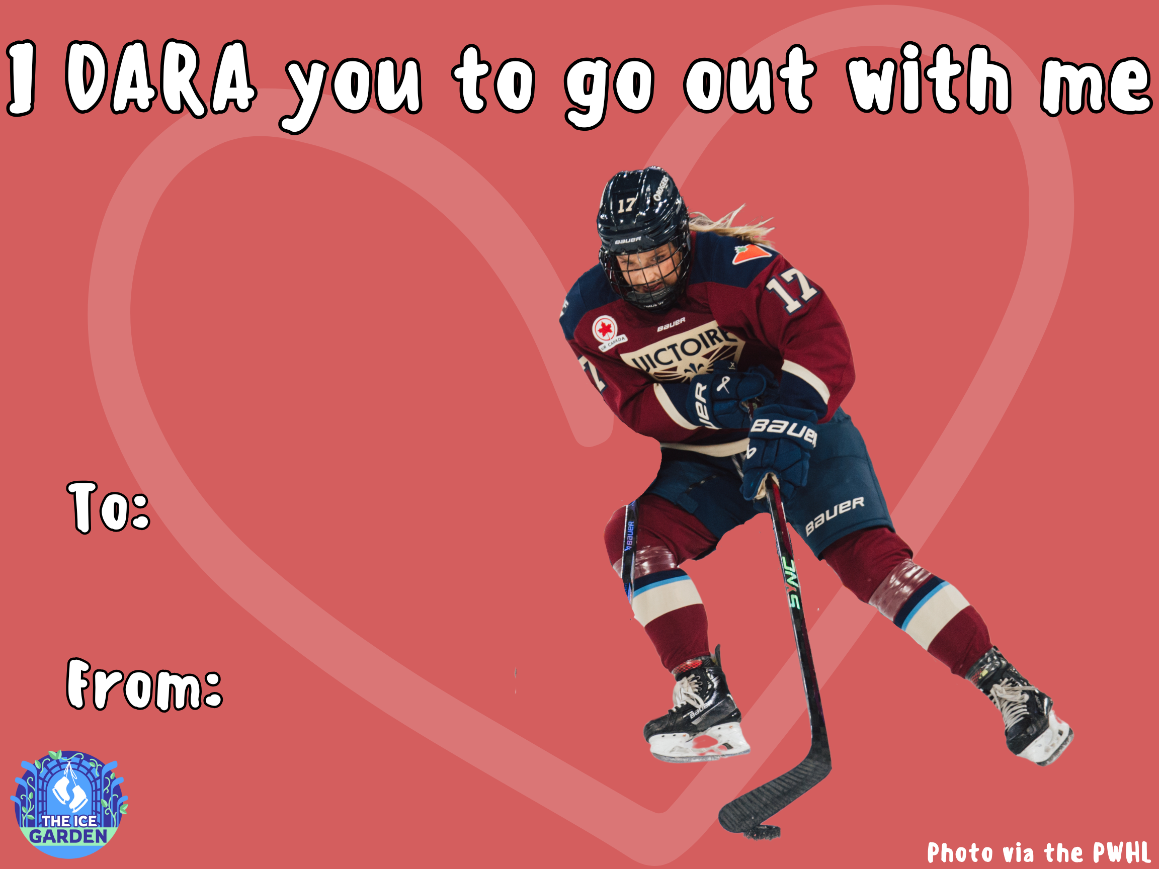 Ah, Valentine’s Day. One of the best days of the year for pun-lovers such as myself. After having way too much fun making PWHL valentines last year, I simply had to bring them back. So, please enjoy these 24 all-new punny cards, and if that’s not enough, check out last year’s crop too.
