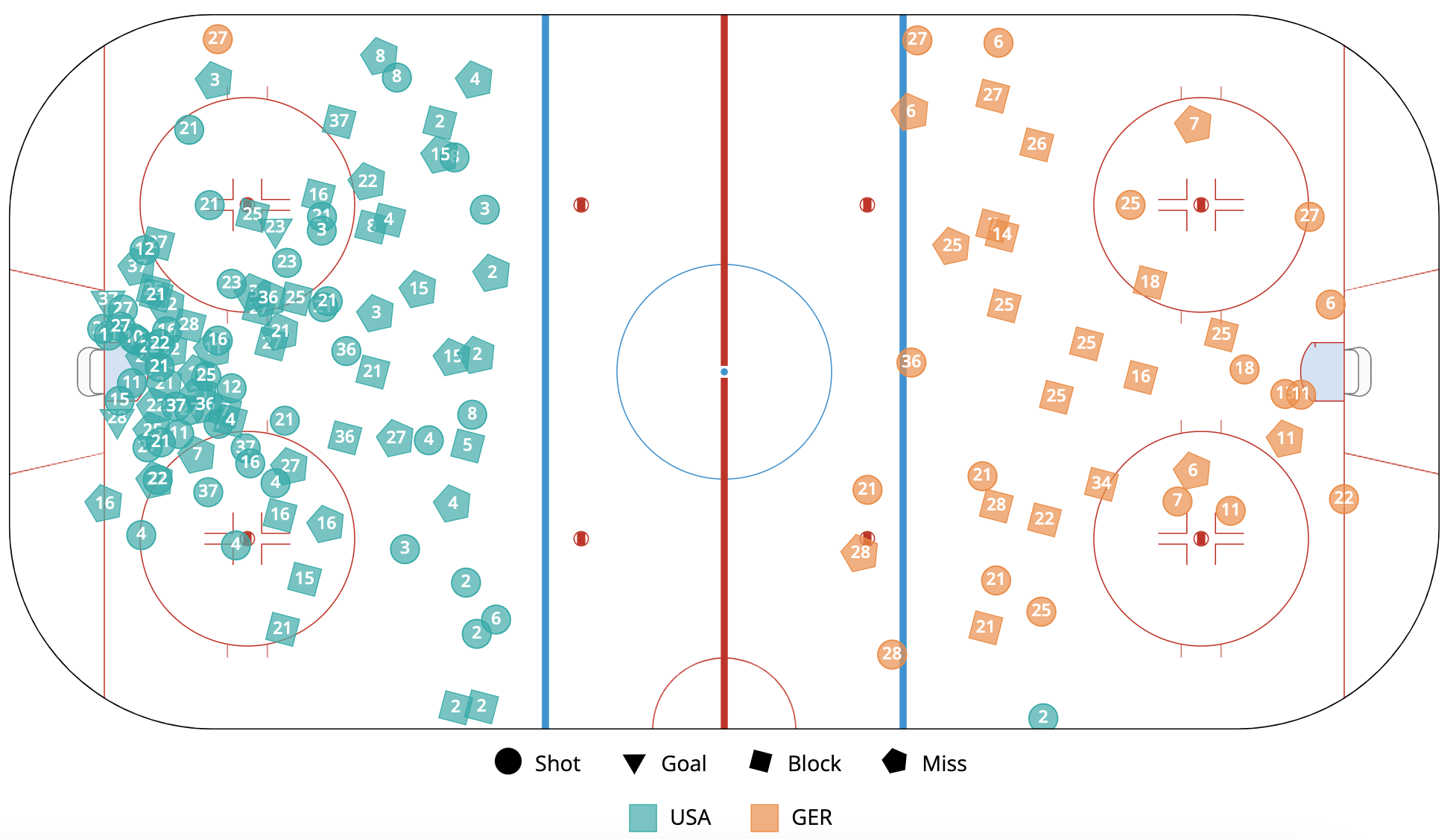 Final Score: 8-2 United States Shot Attempts For% (all situations): 73.61% Germany Shot Attempts For% (all situations): 26.39%