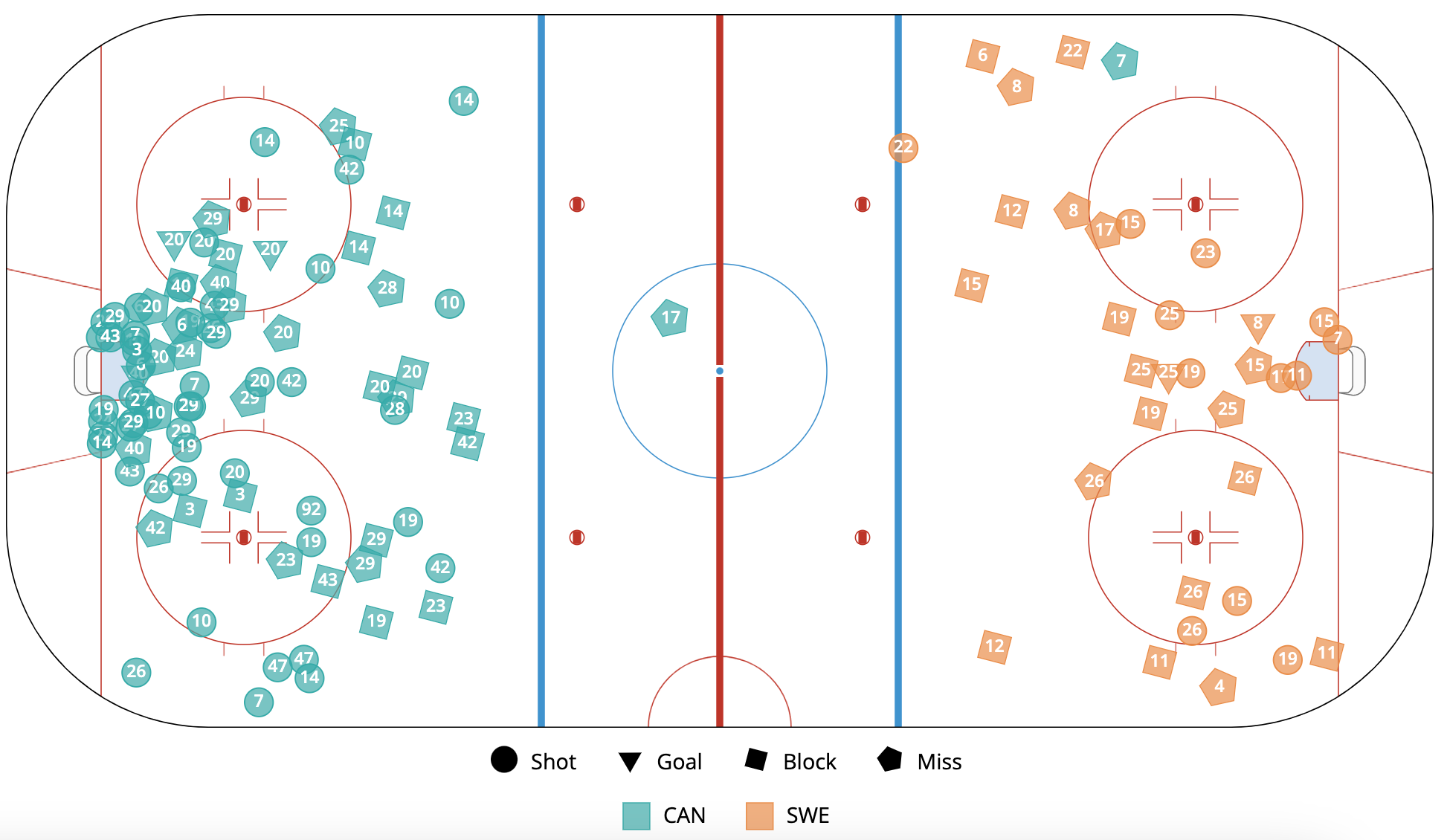 Final Score: 3-2 (OT) Canada Shot Attempts For% (all situations): 72.73% Sweden Shot Attempts For% (all situations): 27.27%