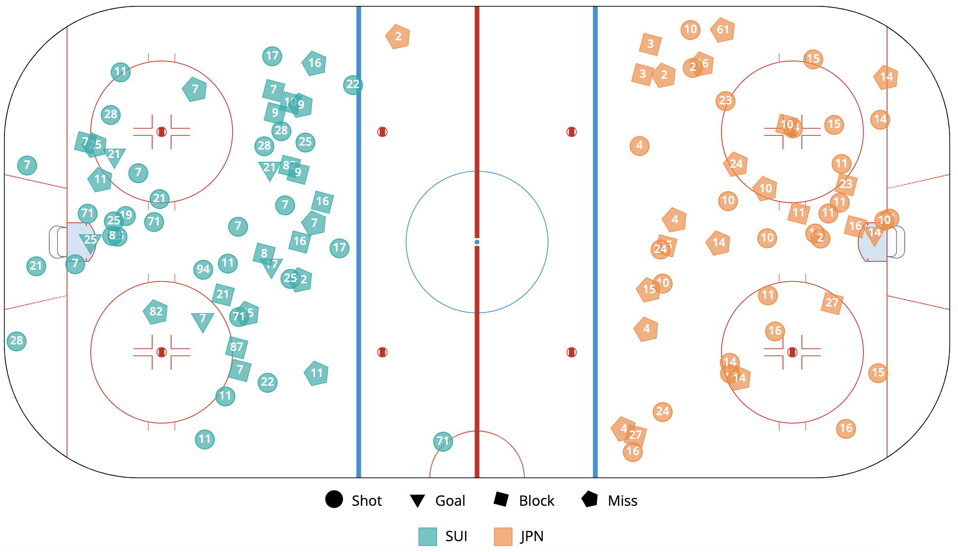 Final Score: 5-1 Switzerland Shot Attempts For% (all situations): 53.27% Japan Shot Attempts For% (all situations): 46.73%