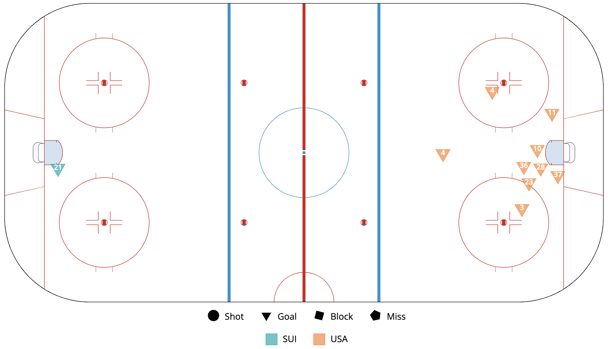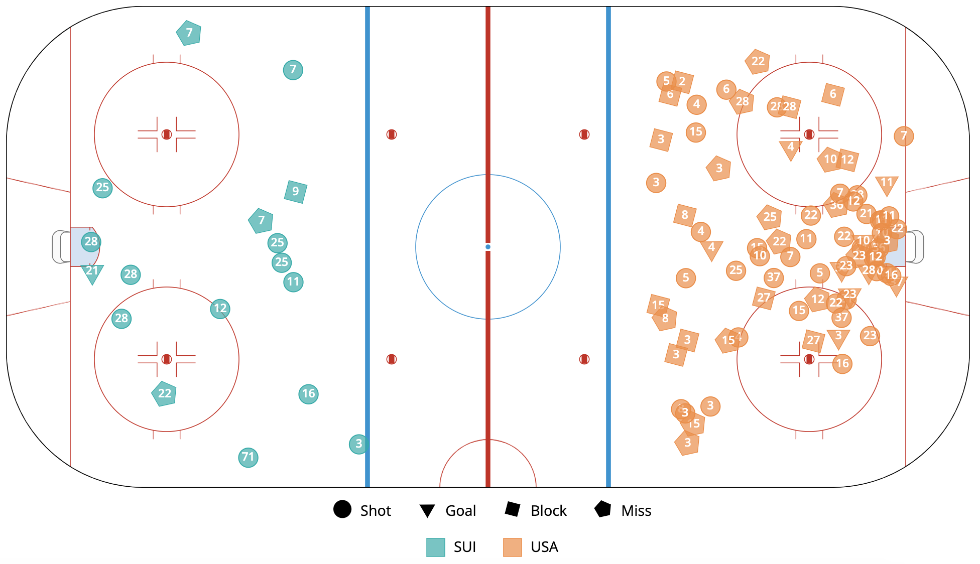 Final Score: 1-9 Switzerland Shot Attempts For% (all situations): 17.53% USA Shot Attempts For% (all situations): 82.47%