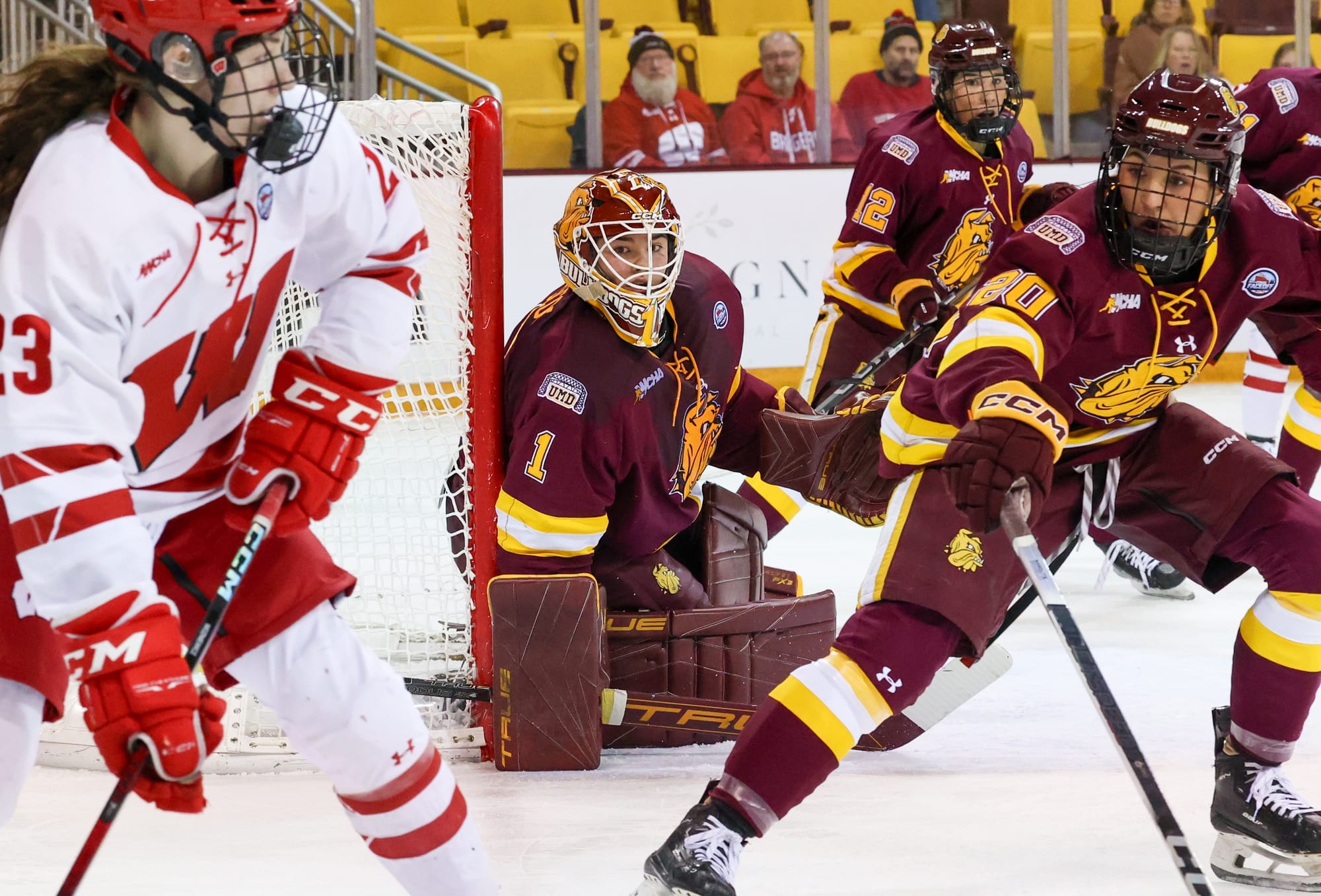 The 2025 NCAA Women's Ice Hockey Championship First Round kicks off with three games on Thursday, with Minnesota Duluth slated for their fifth straight appearance in the tournament. The Bulldogs are looking to move on to the next round and make it further than last year’s end in the quarterfinals. With a 9-5 record in NCAA First Round/Quarterfinals, UMD has a chance to make it further this time around, with a talented team featuring WCHA Rookie of the Year Caitlin Kraemer; All-WCHA Team honorees that include Olivia Mobley, Clara Van Wieren, and Tova Henderson; and star netminder Ève Gascon, who earned honors of her own. The 21-year-old goalie is only in her sophomore campaign. But as she gears up for another appearance with the Bulldogs in the NCAA tournament, the future is bright for the rising star, who is more than ready to take the next step in showing the league what she’s made of.