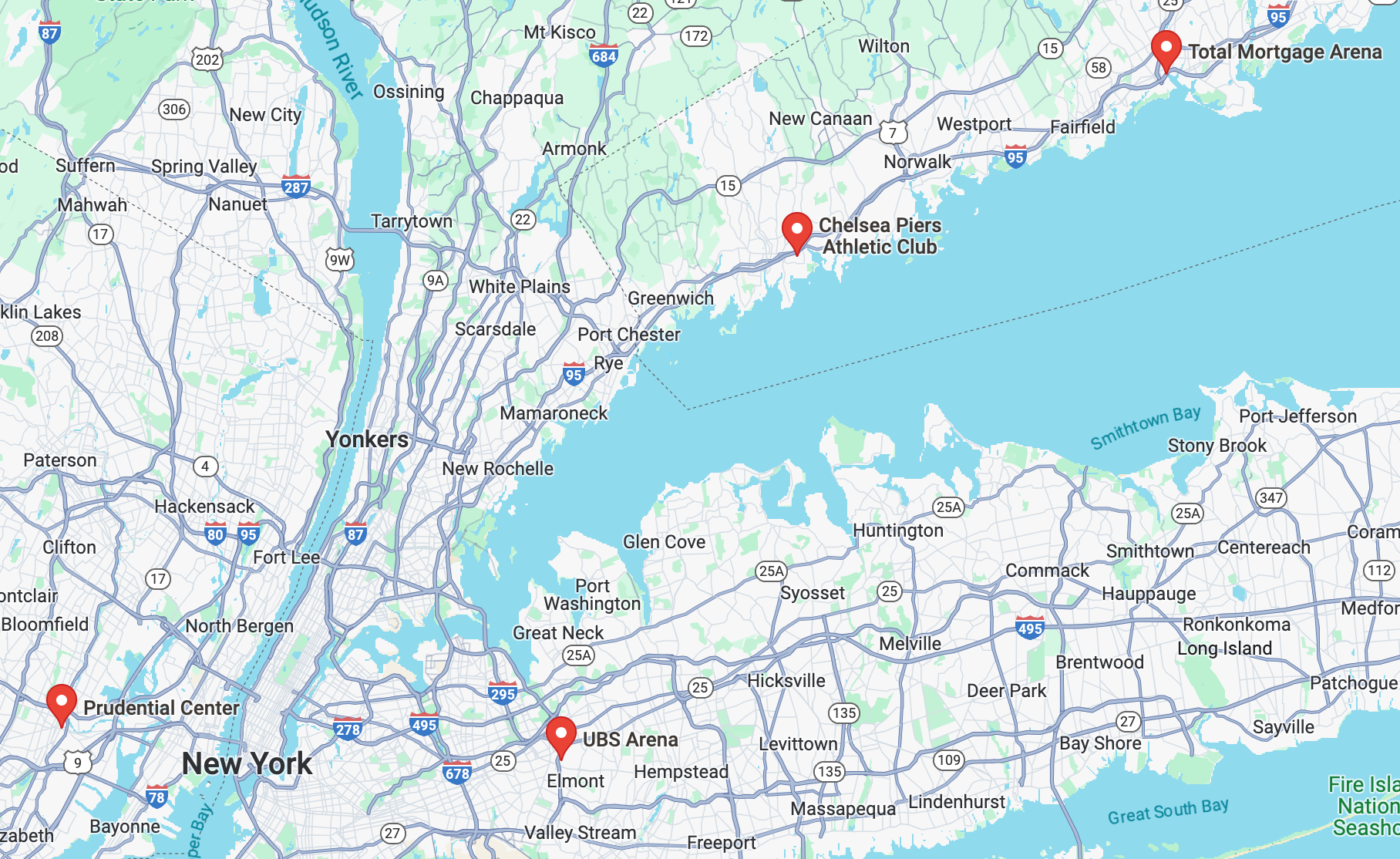 But what would also probably help is consistency in their home arena. In their 12 home games, they played in three different arenas in three different states - Total Mortgage Arena in Bridgeport, CT. (four games), UBS Arena in Elmont, NY. (six games), and the Prudential Center in Newark, NJ (two games) - while practicing in a fourth location - Chelsea Piers in Stamford, CT.