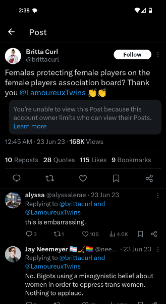 The 2024 draft class includes at least one openly transphobic player in Britta Curl, as shown below.