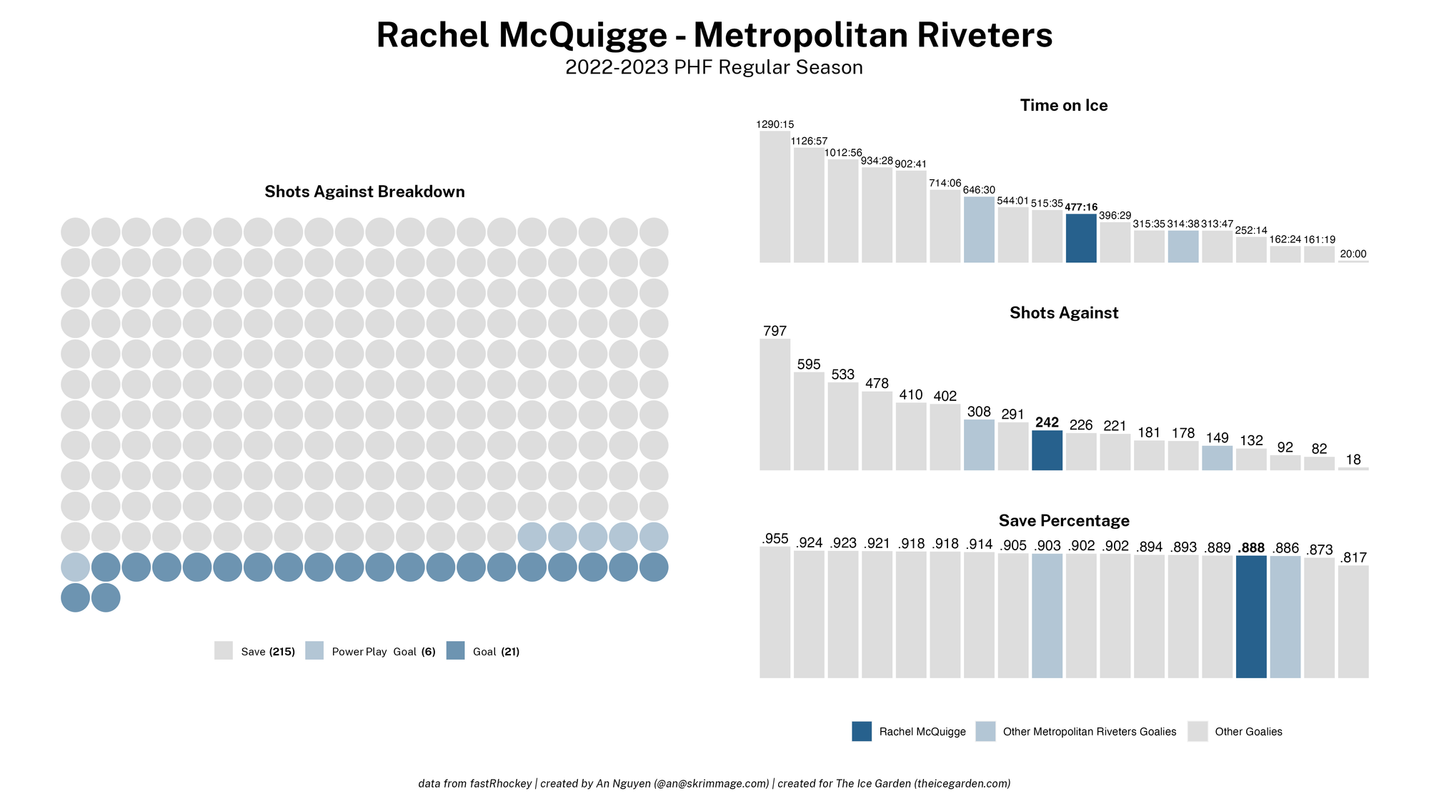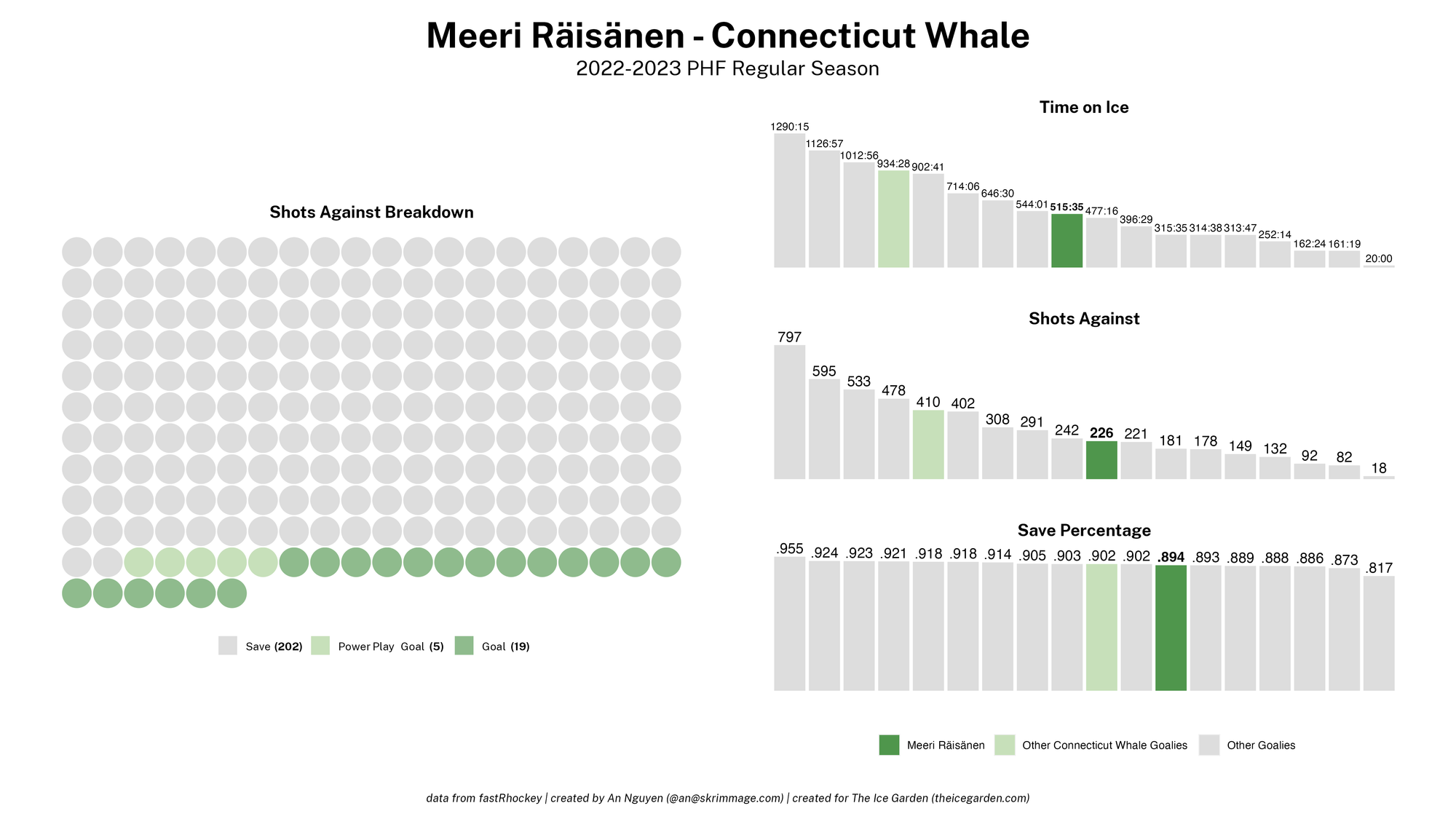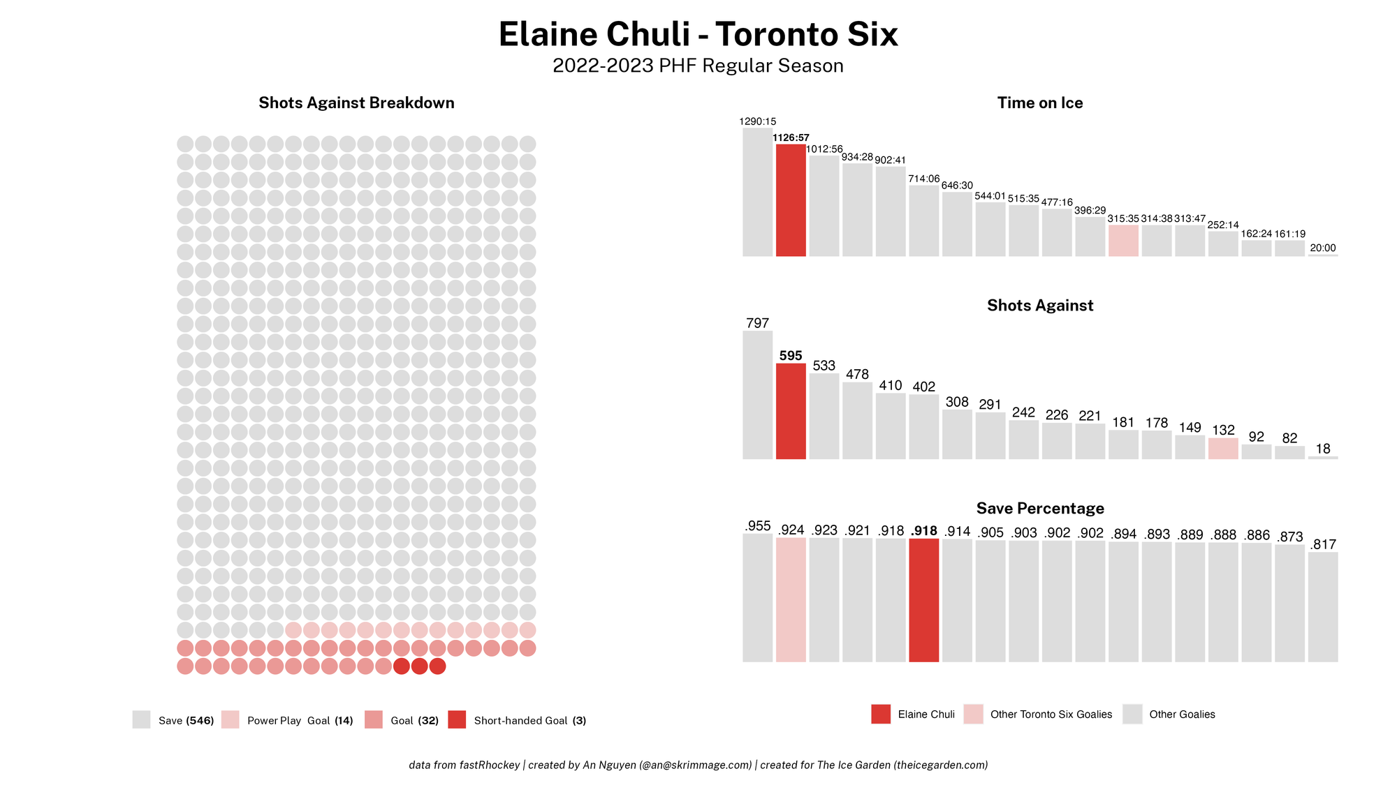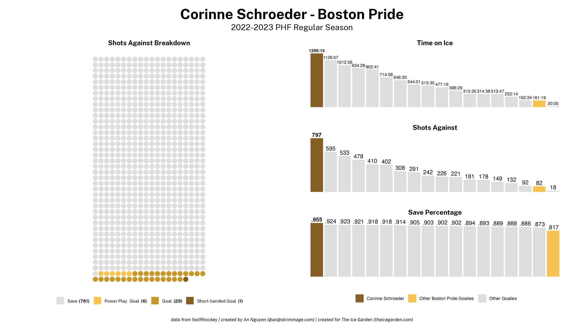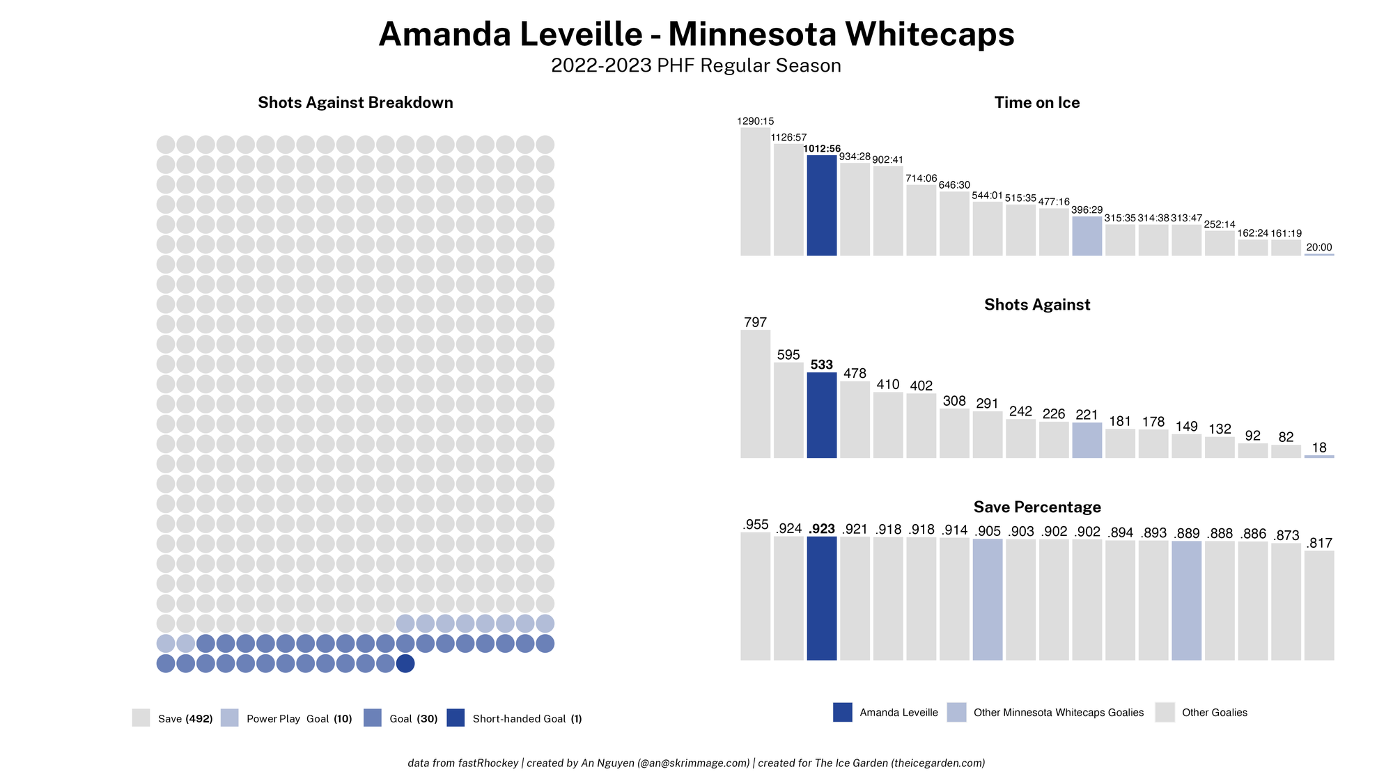 The 2022-23 PHF regular season promised a lot of excitement, what with the raised salary cap and the awaited addition of a seventh team in the Montréal Force. We at The Ice Garden have published a season recap for every single team, that you can and should check out (instead of asking me how long I spent counting on my fingers to find an appropriate seven word phrase), but I wanted to take a look back at the season through my lens of expertise — data visualizations! These data viz look at some of the stats of the season for each team, focusing on whether the team led or lagged on the scoreboard during games, who was involved with the team's goals, and the performance of the team's goalies in comparison with one another and across the league. For more information on how to interpret these visualizations, check out my data viz reference.