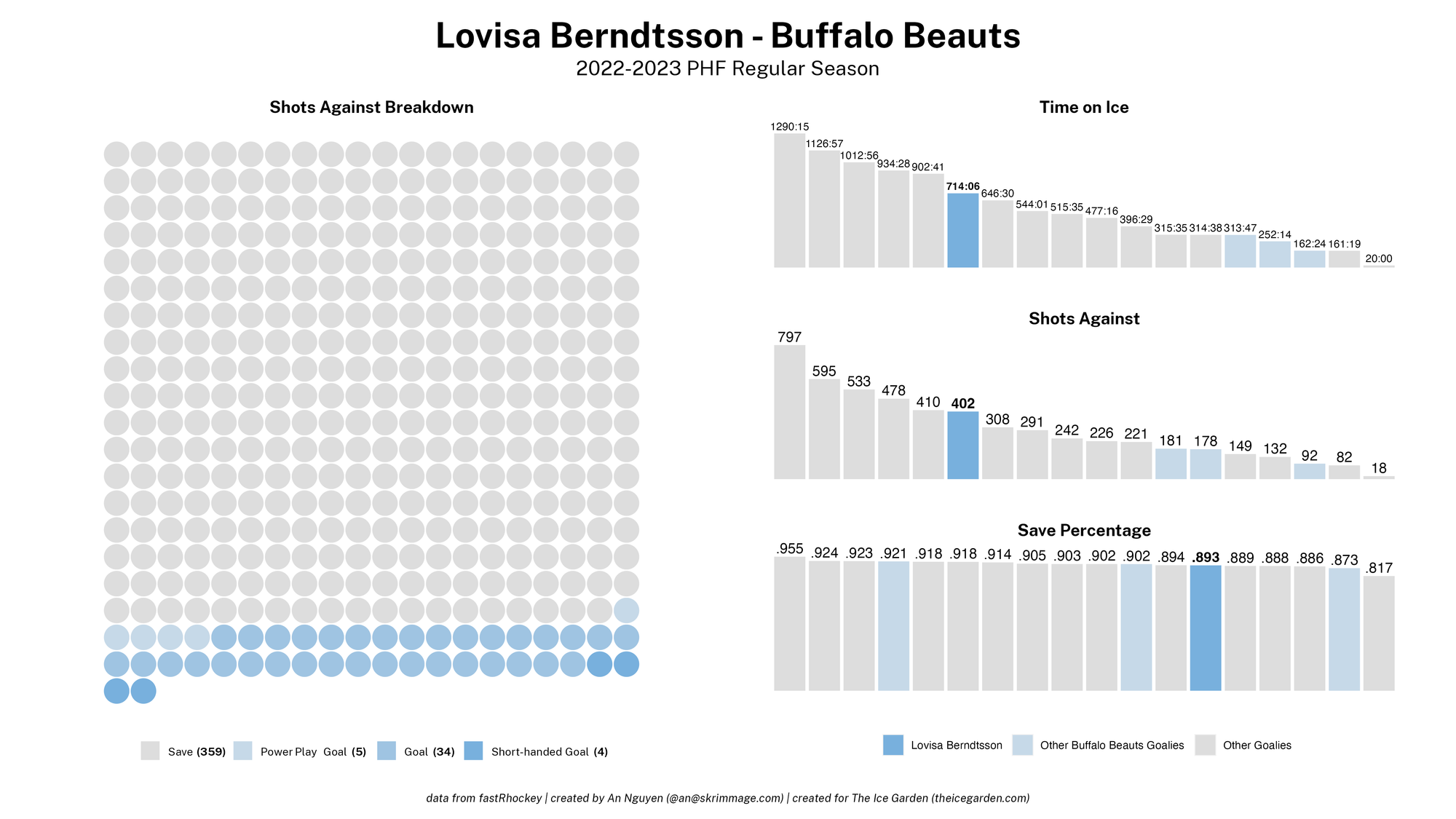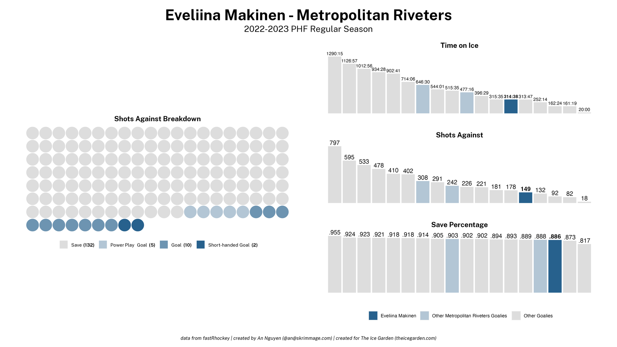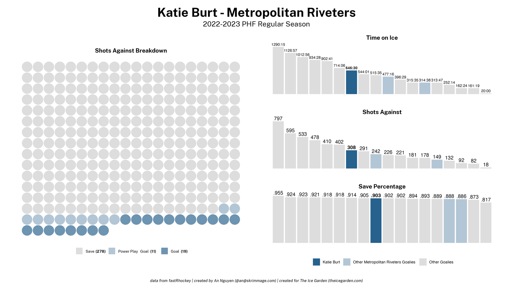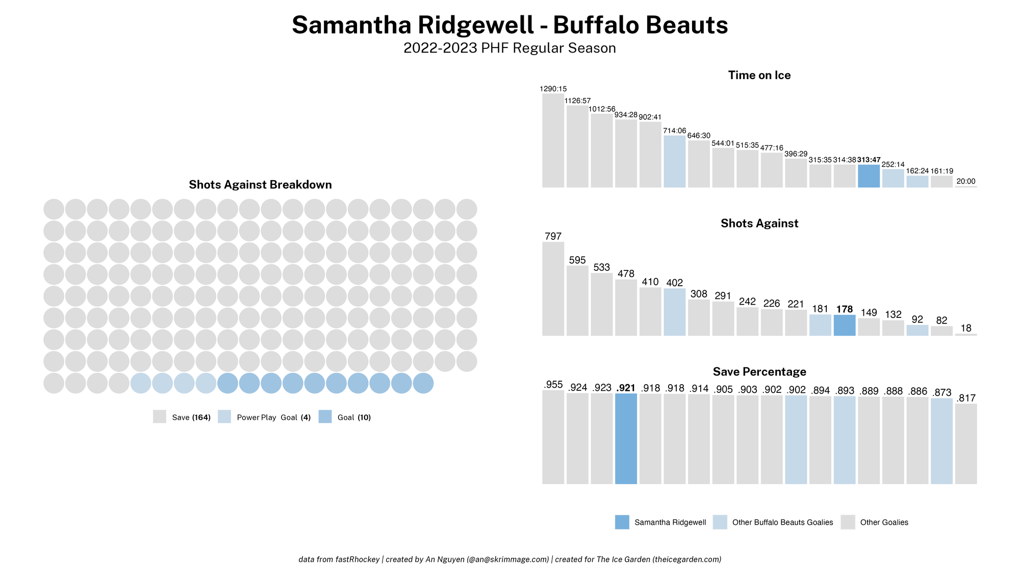 The 2022-23 PHF regular season promised a lot of excitement, what with the raised salary cap and the awaited addition of a seventh team in the Montréal Force. We at The Ice Garden have published a season recap for every single team, that you can and should check out (instead of asking me how long I spent counting on my fingers to find an appropriate seven word phrase), but I wanted to take a look back at the season through my lens of expertise — data visualizations! These data viz look at some of the stats of the season for each team, focusing on whether the team led or lagged on the scoreboard during games, who was involved with the team's goals, and the performance of the team's goalies in comparison with one another and across the league. For more information on how to interpret these visualizations, check out my data viz reference.