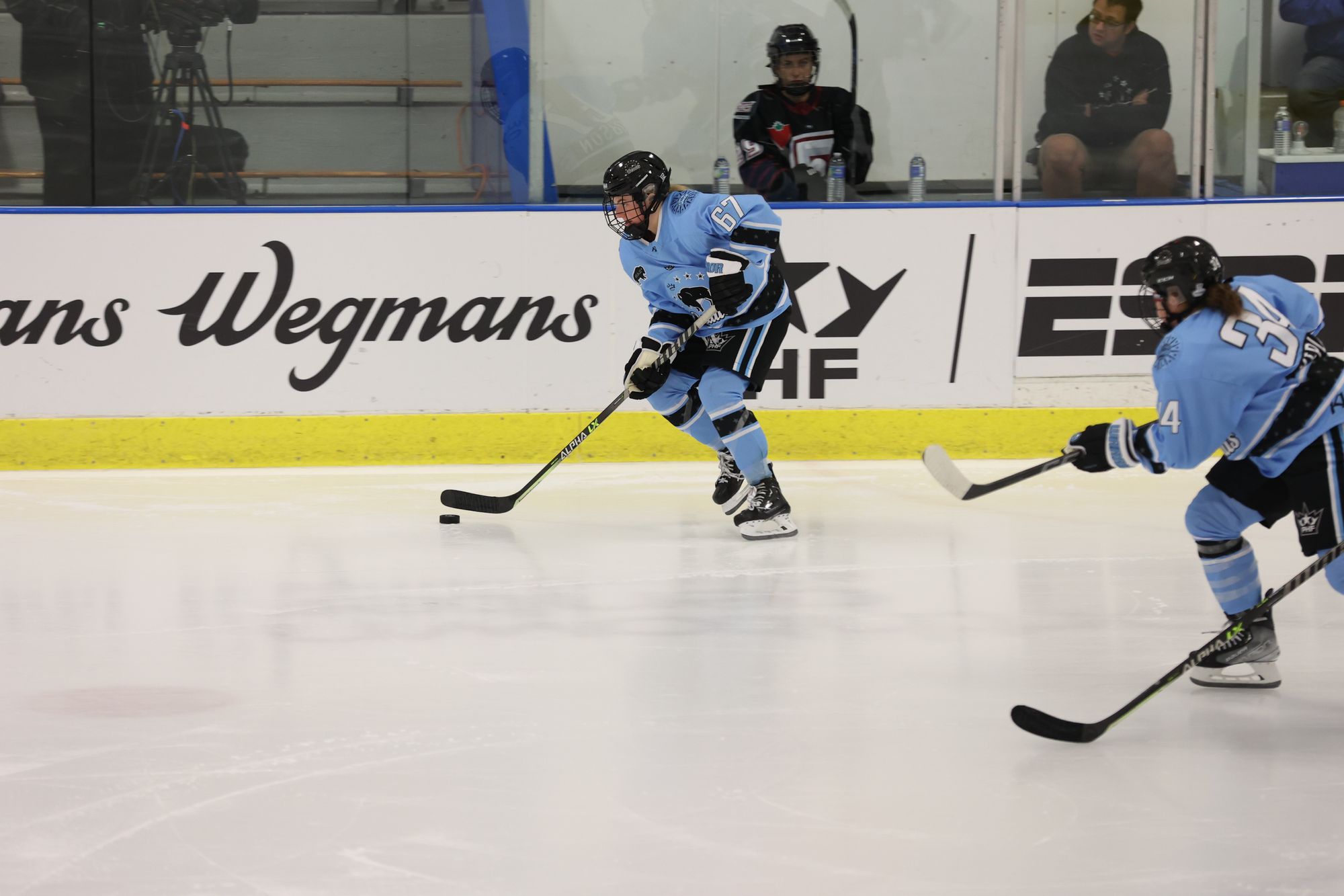 Summer-Rae Dobson (left) and Claudia Kepler skate up the ice. Photo by Michael Hetzel/Buffalo Beauts.