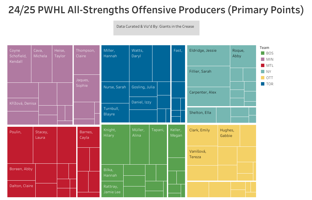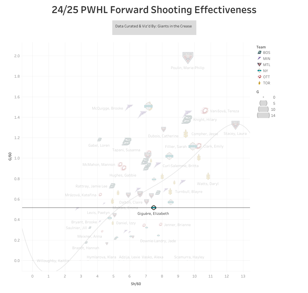 Kind of sticking on the Toronto train of thought because the Sceptres have the best power play in the league bar none. Something they do that’s interesting is despite playing Julia Gosling in the bottom six, sometimes even as the 13th forward, she’s on PP1. You don’t always need a top six player on the PP and Montréal could look for someone who could play a few minutes at even strength but be a PP specialist. Someone who might fit that bill is New York Sirens Élizabeth Giguère. Anyone who’s watched her knows the skills are there, just not the mobility aka the perfect PP specialist. The question is though, who do you trade for her? The name that sticks out on Montréal’s roster is Maureen Murphy who seen her usage and production fall sharply. With opportunities in the New York top six she might view the change of scenery as a good thing.