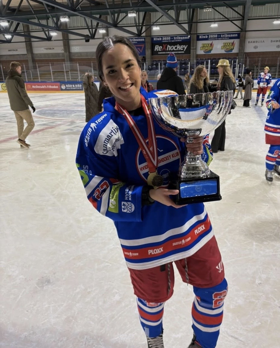 When asked if the season mirrors her own lifelong tendency to set big goals and achieve them no matter what stands in her way she says, “I think a lot of what I reflect on is simply perseverance…Whether it was bringing my hockey gear with me, finding a team, winning a championship. I'm super proud of the fact that the goals that I set out to do two years before – Okay, I'm gonna go to the university, I'm gonna go to Sweden, I'm going to go play hockey, and the championship was a bonus, but I made all of that happen.”