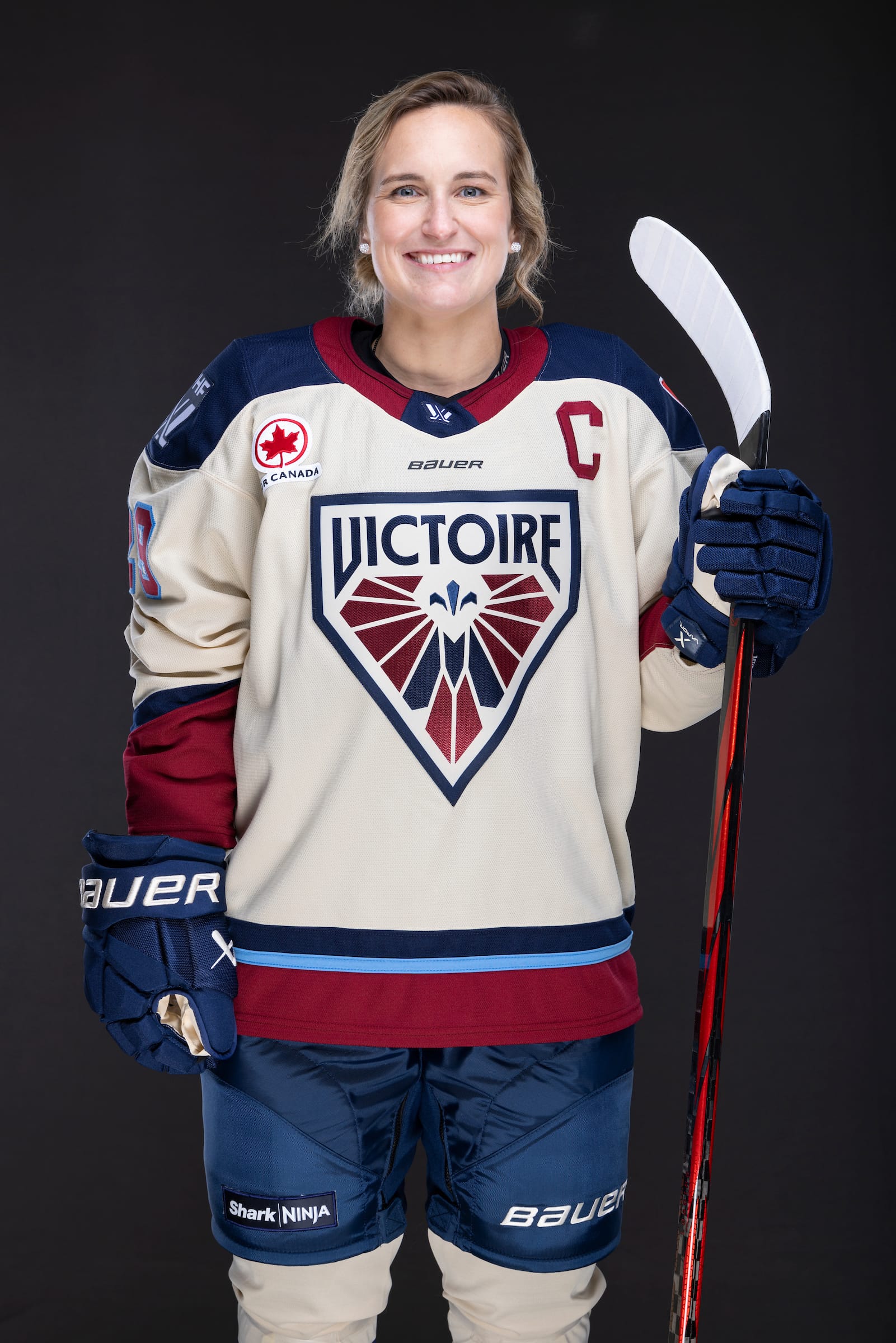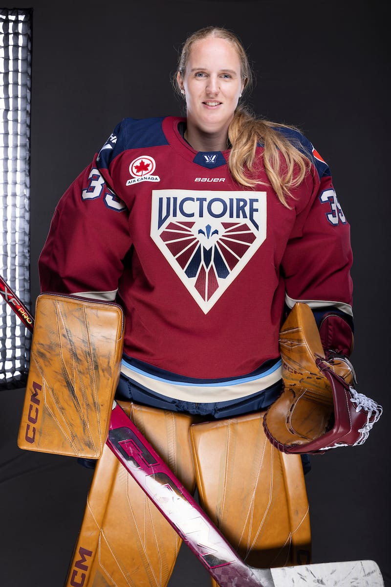 Marie-Philip Poulin and Ann-Renée Desbiens in the Montréal Victoire jerseys | Credit: PWHL